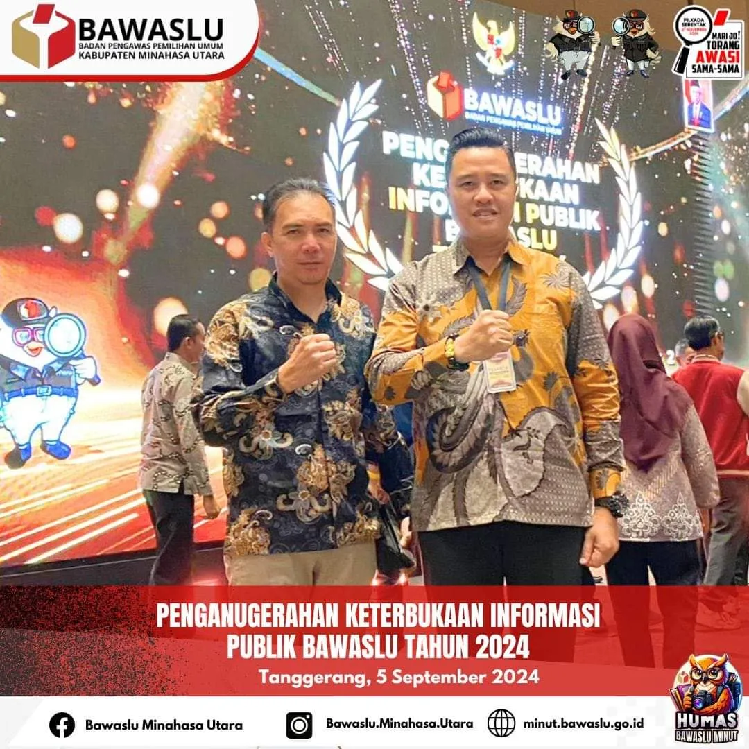 Ketua Bawaslu Minahasa Utara, Rocky Marciano Ambar dan Korsek Michael SA Polii, Mengikuti Giat Penganugerahan Keterbukaan Informasi Publik Bawaslu Tahun 2024,Tanggerang, 4 - 6 September 2024