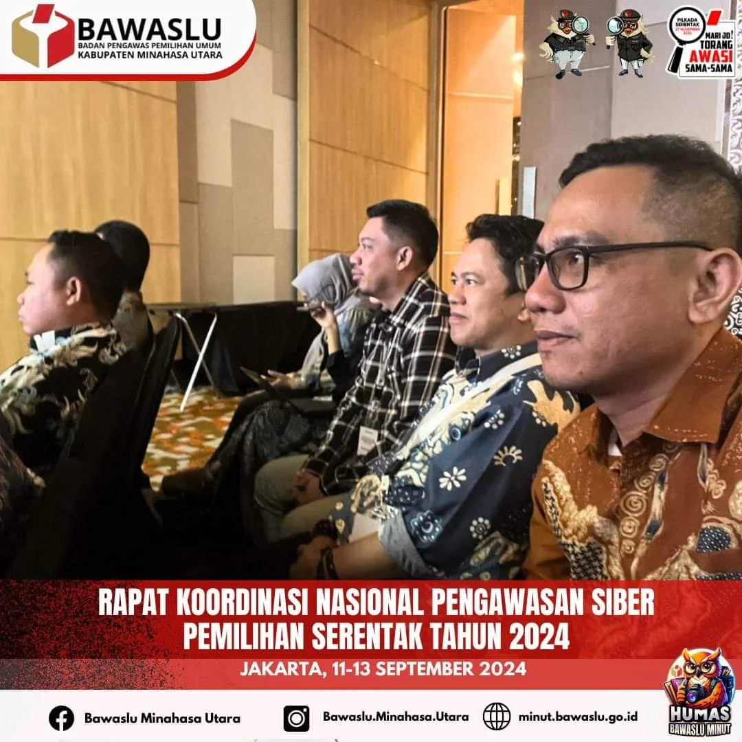 Kordiv P3S Bawaslu Kabupaten Minahasa Utara, Hadiri Rakor Nasional Pengawasan Siber Pemilihan Serentak Tahun 2024, Jakarta , 11-13 September 2024