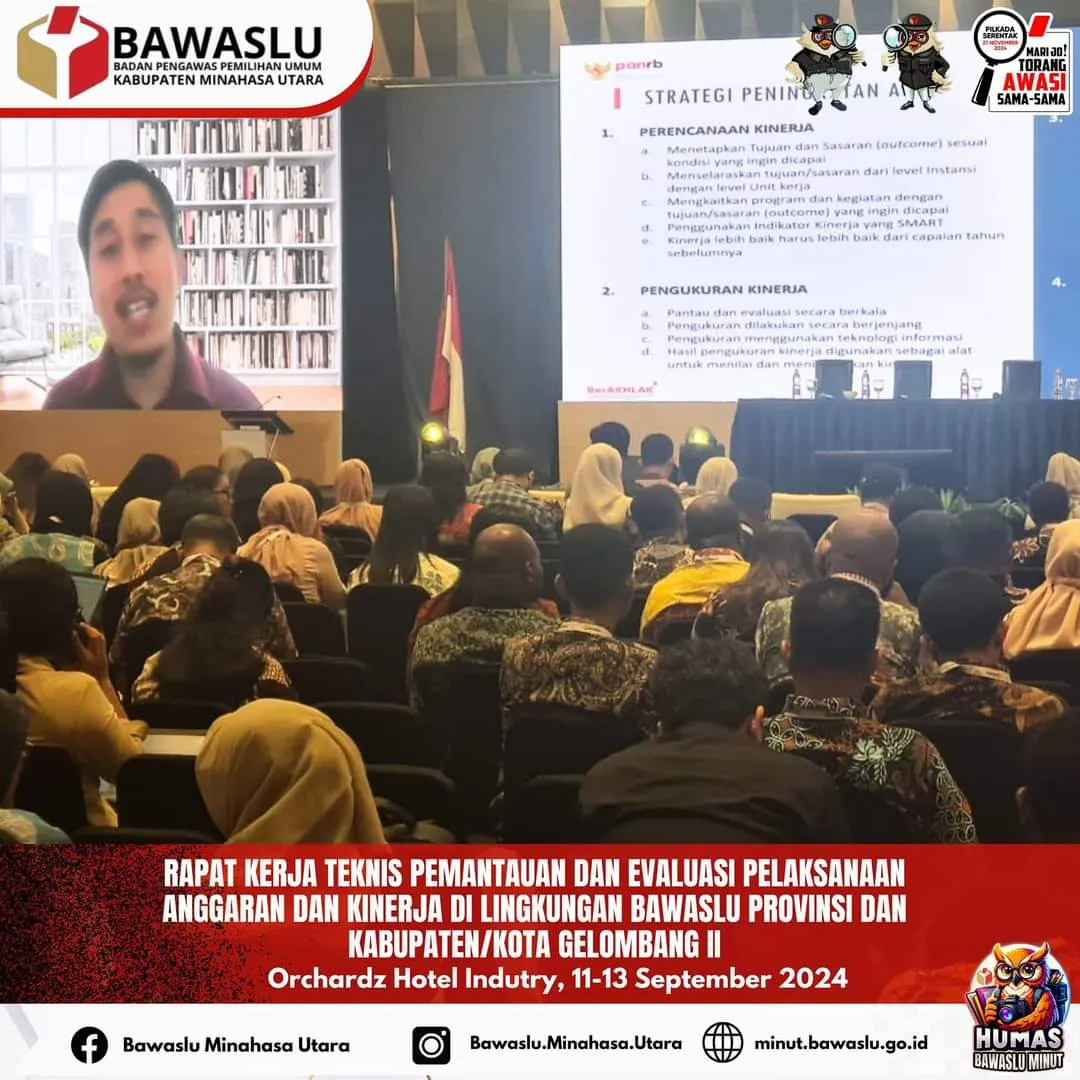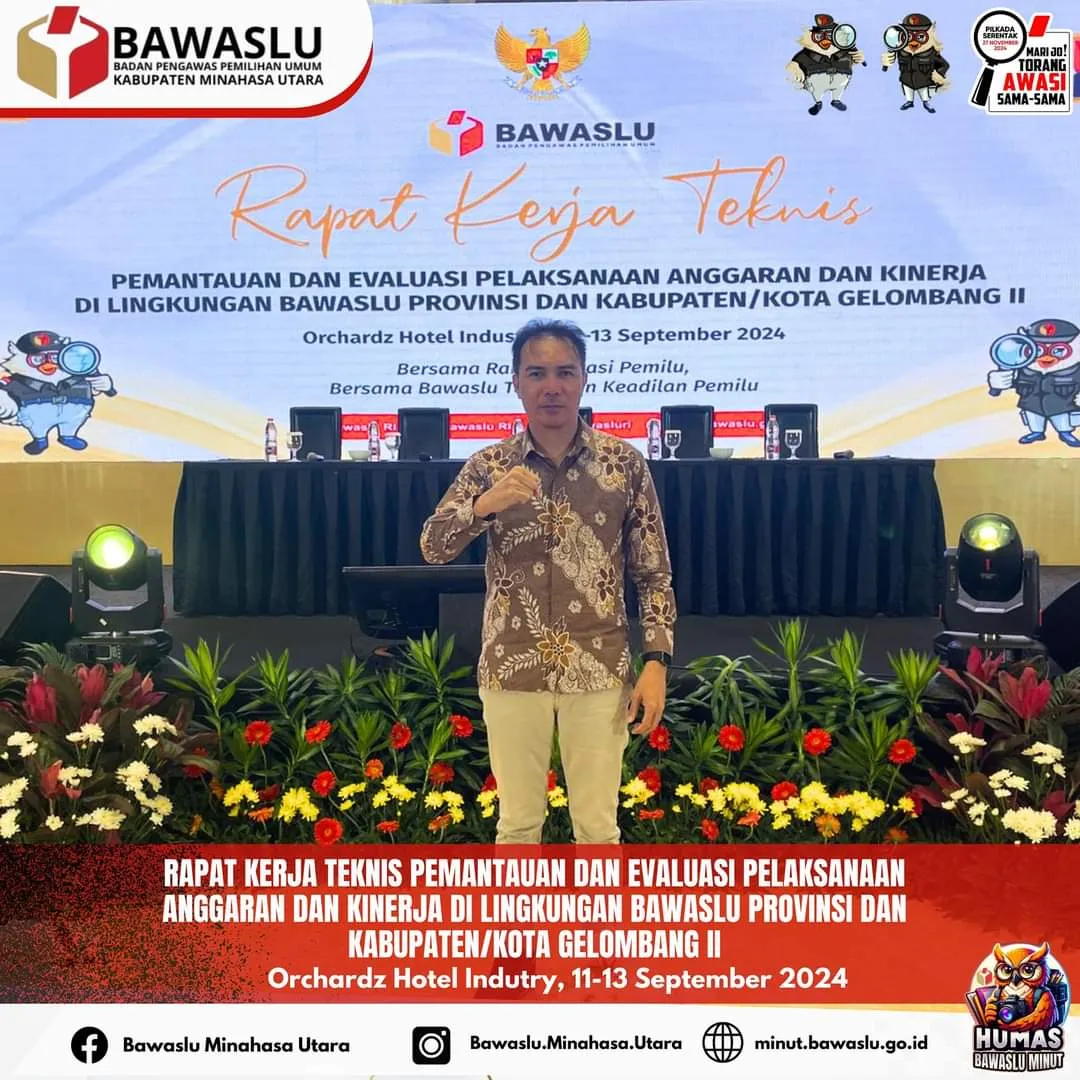 Korsek Bawaslu Minahasa Utara Michael SA Polii, mengikuti Rapat Kerja Teknis Pemantauan Dan Evaluasi Pelaksanaan Aanggaran Dan Kinerja Di Lingkungan Bawaslu Provinsi Dan Kabupaten/Kota Gelombang II". Orchardz Hotel Industri, 11-13 S